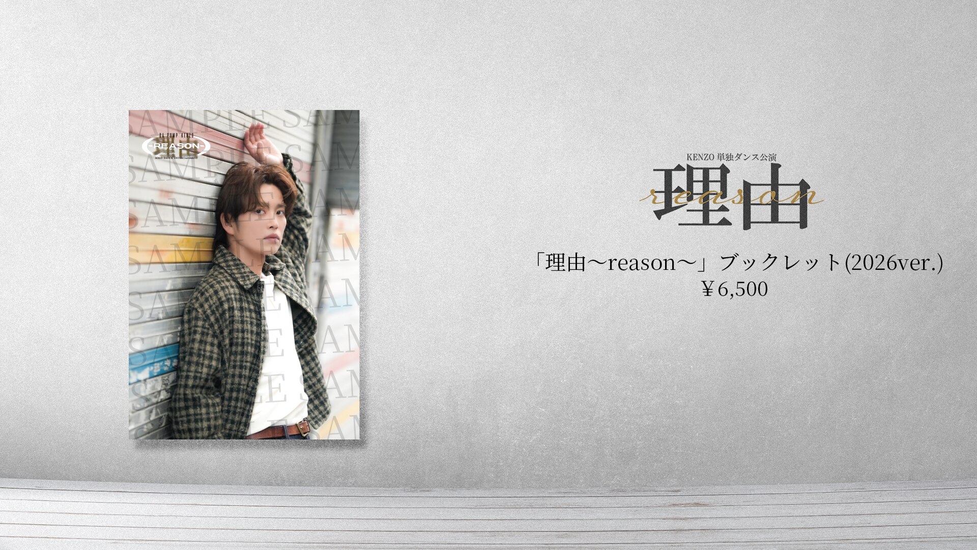 KENZO単独ダンス公演「理由~reason~」の各会場にて、『「理由~reason~」ブックレット(2026ver.)』をご購入された方を対象に、「2ショットチェキ撮影参加券(各公演3名様)」がブックレットのいずれかのページに同封されております。