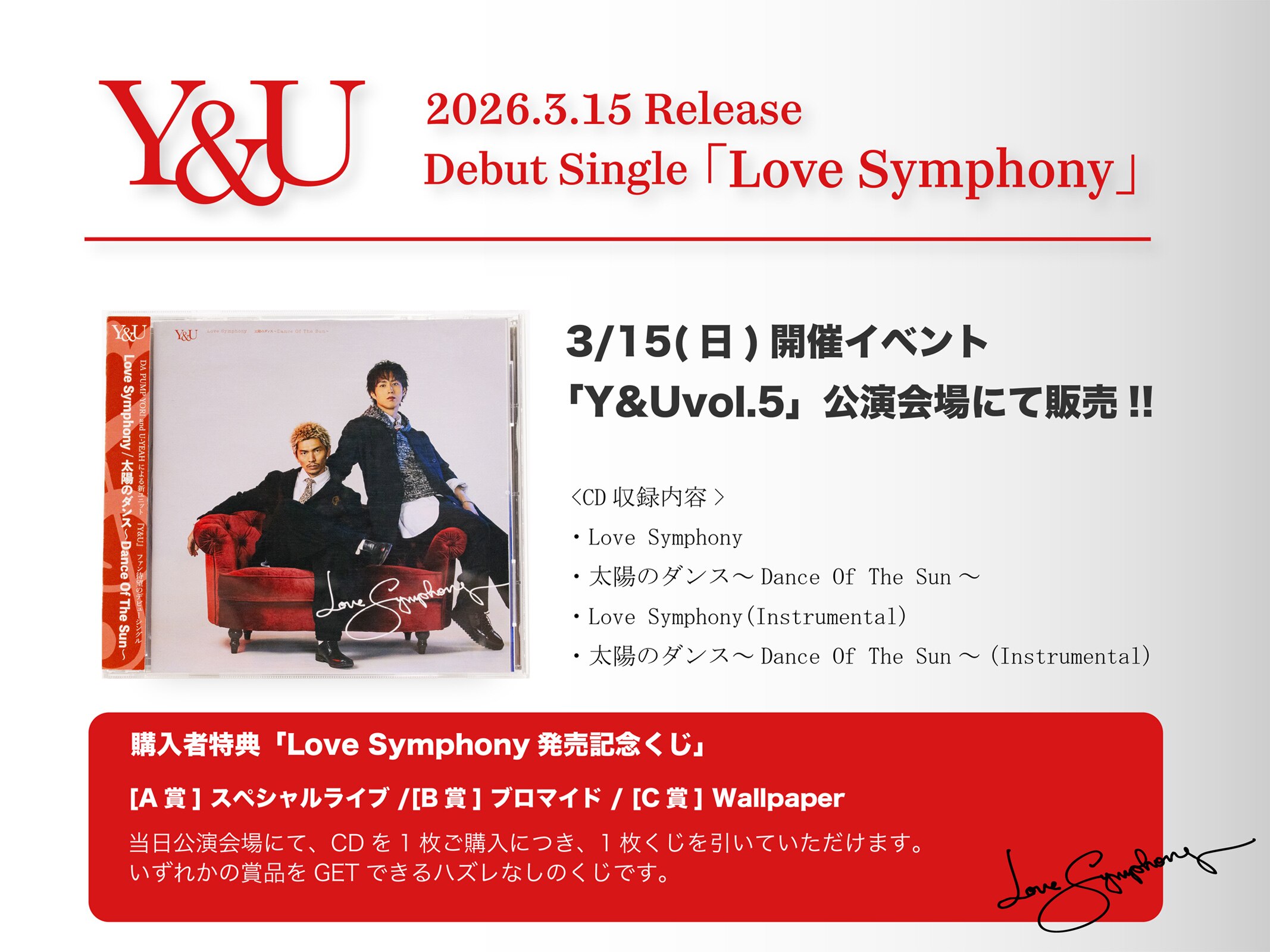 3/15(日)Y&U「Love Symphony」CD発売決定!!(YORI/U-YEAH)