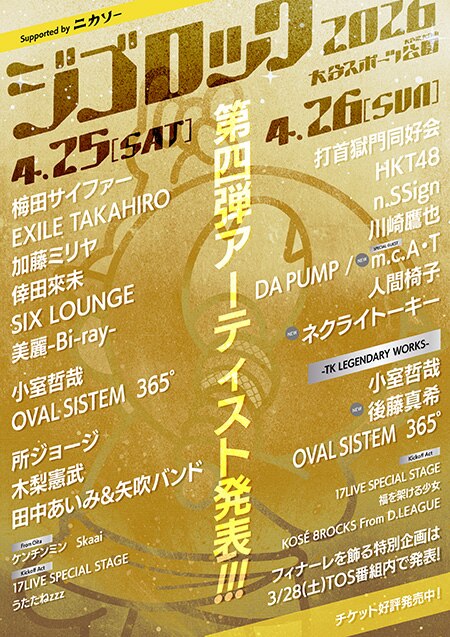 DA PUMP&m.c.A・T4/25・26開催「ジゴロック2026 supported by ニカソー」出演決定!「超超超!SUPER HAPPY feat. m.c.A・T」購入者対象ハイタッチ会も会場にて開催予定