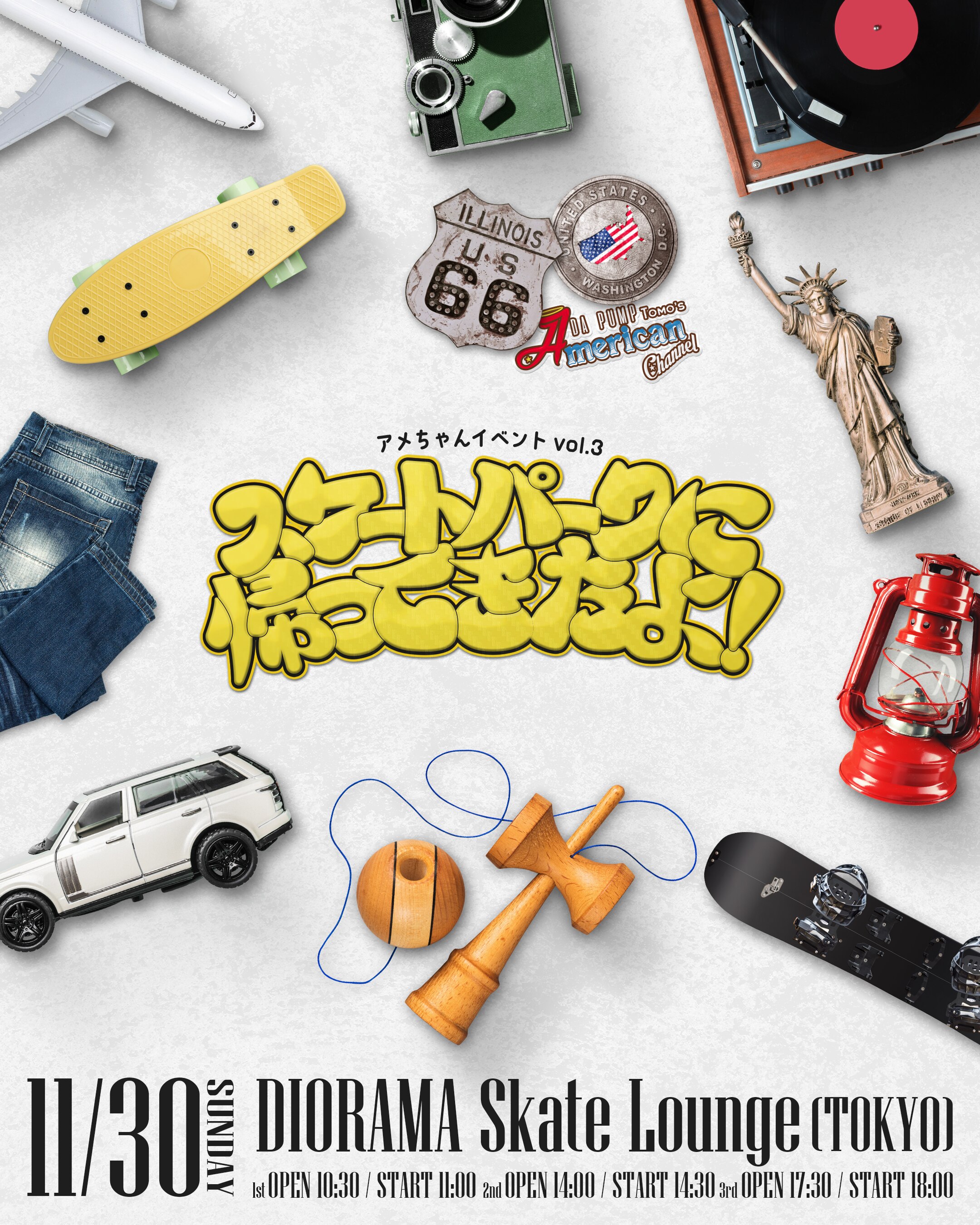 2025.11.30LIVE/EVENT アメちゃんイベントvol.3 スケートパークに帰ってきたよ!(TOMO) ◼︎日程:2025年11月30日(日) ◼︎会場:東京・DIORAMA Skate Lounge (東京都板橋区板橋1-48-8ダイアパレス新板橋B1) ※詳細は後日お知らせいたします。 チケット情報・詳細はこちら https://dapump.jp/news/detail.php?id=1128781